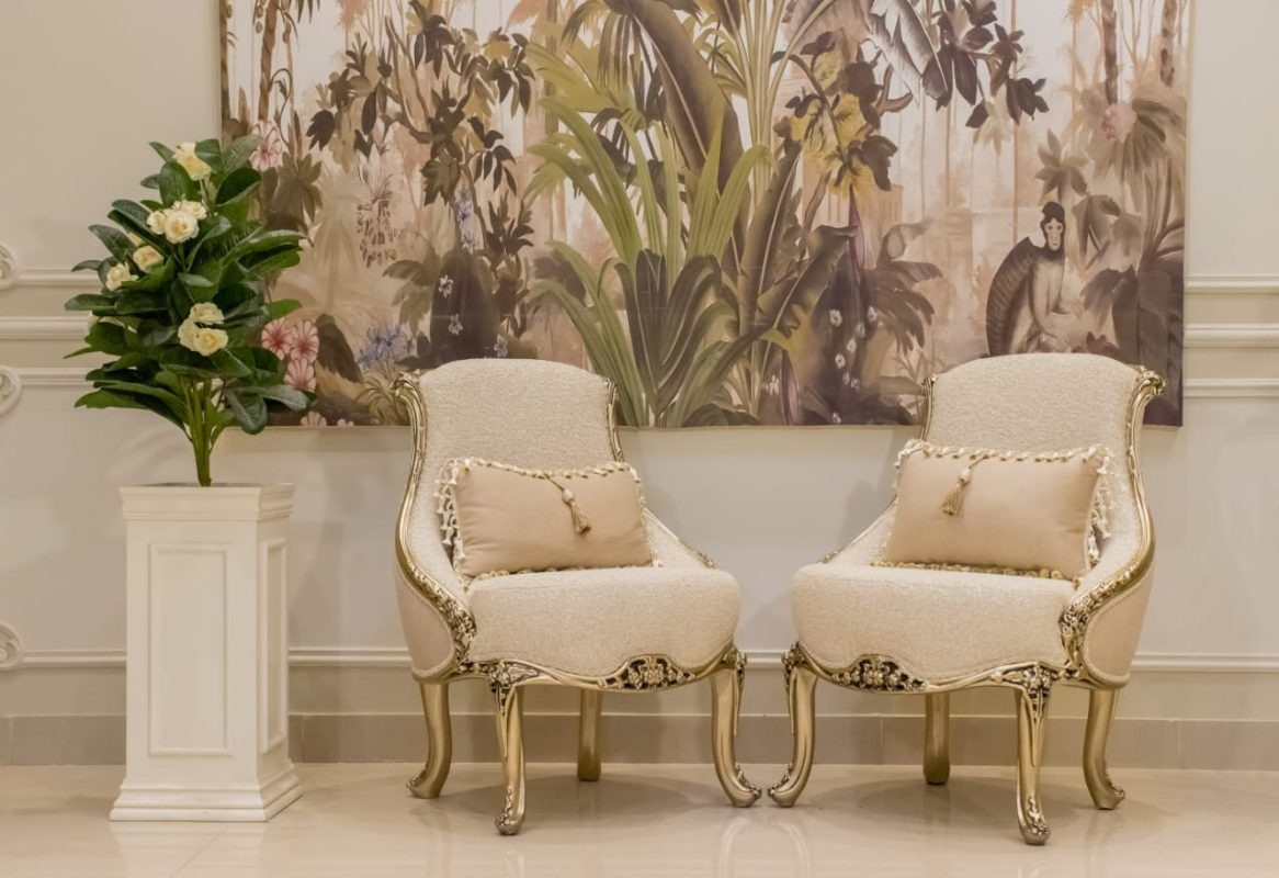 صالون كلاسيك 3054   المواصفات: يتميز الإطار الخشبي المكشوف بتشطيبات فضية أو ذهبية مذهلة بهذا التصميم المنحني ضمان 5 سنوات.
