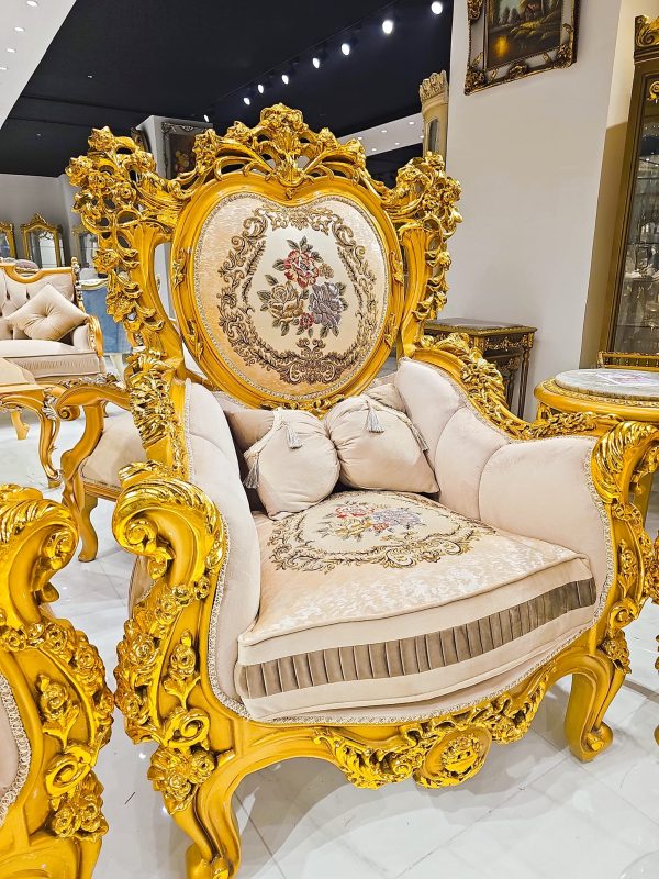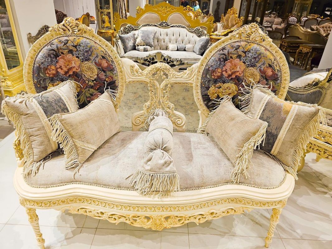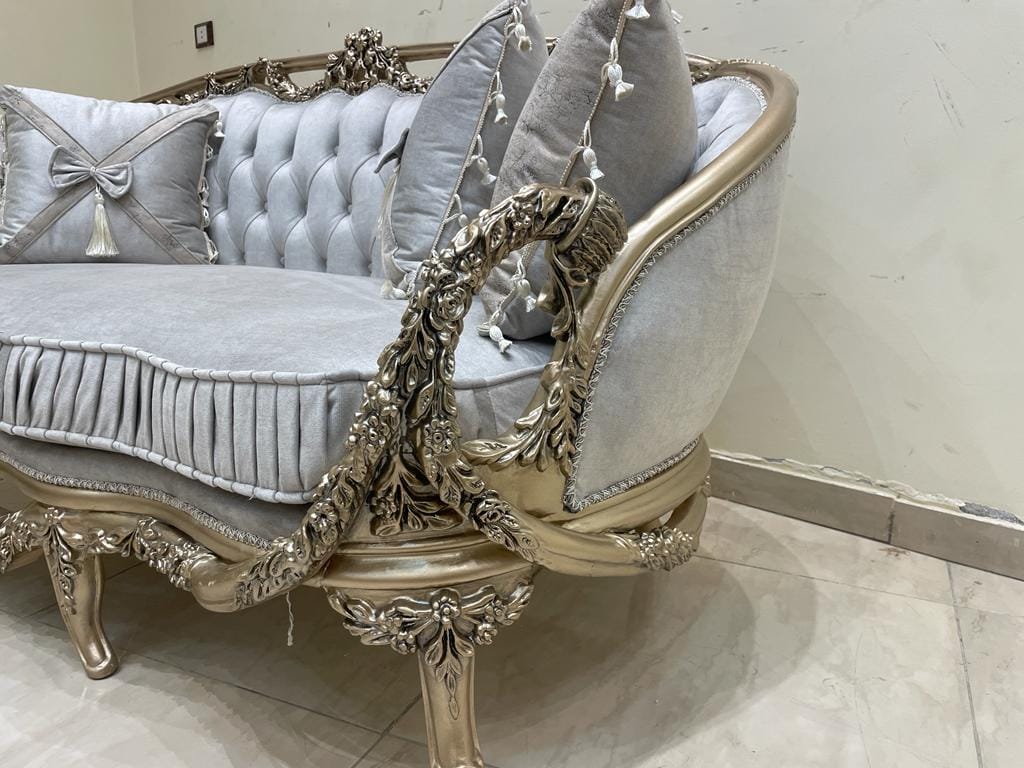 صالون كلاسيك 3056   المواصفات: يتميز الإطار الخشبي المكشوف بتشطيبات فضية أو ذهبية مذهلة بهذا التصميم المنحني ضمان 5 سنوات.