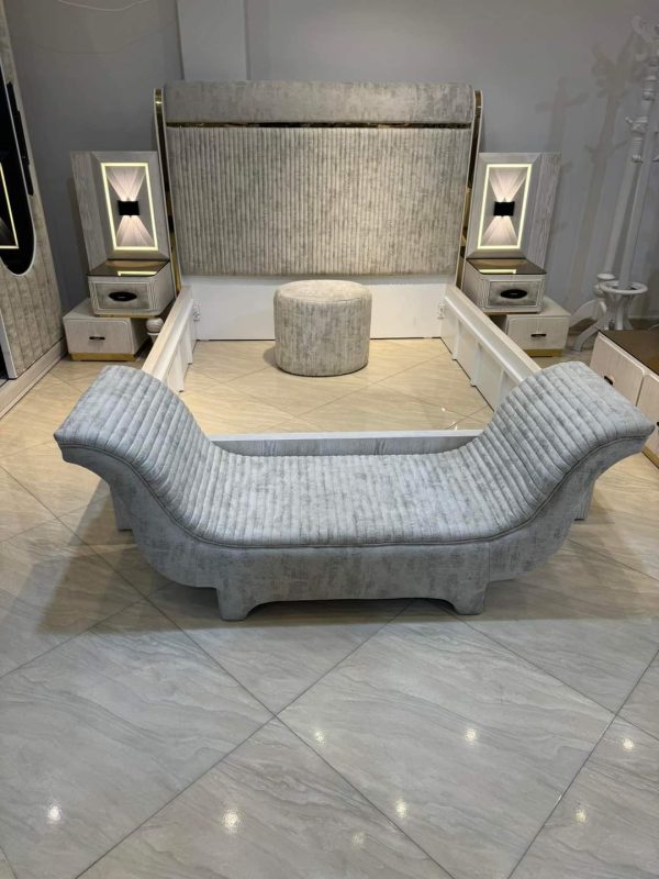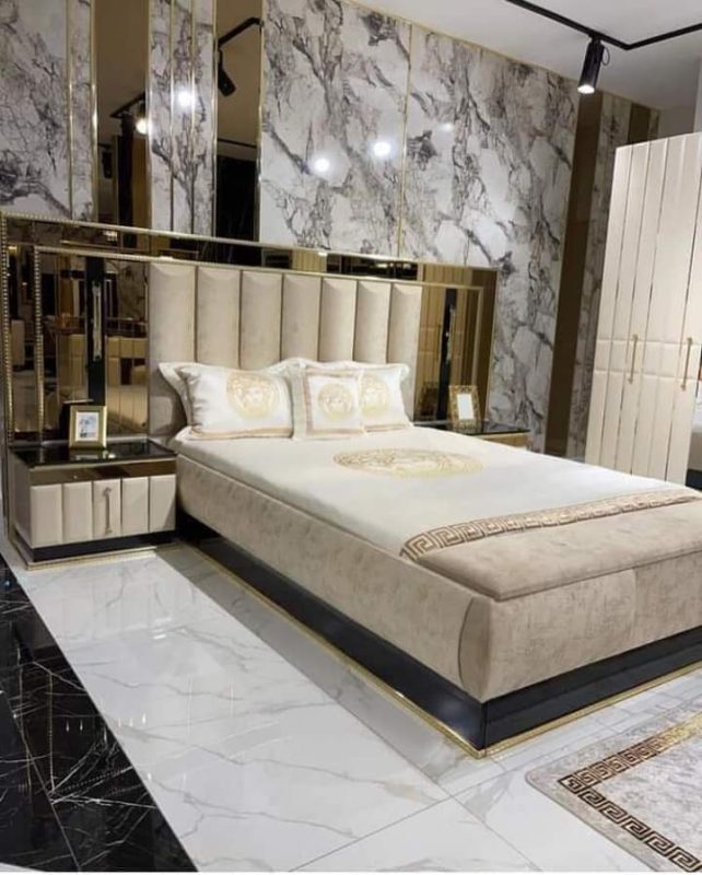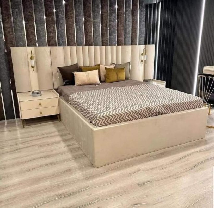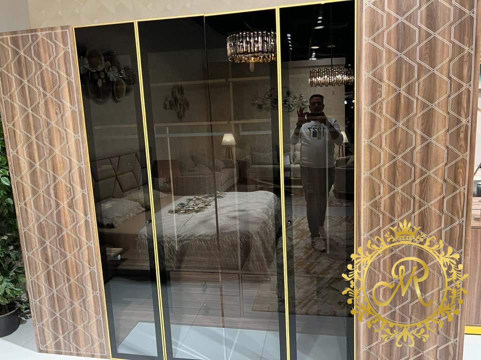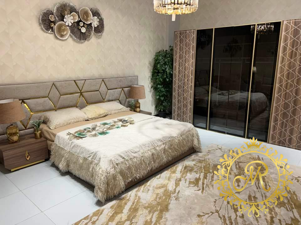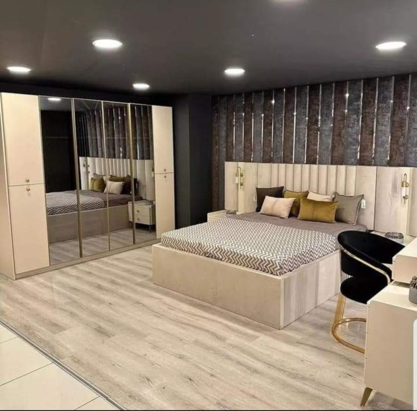 غرفه نوم مودرن 1012 المكونات: سرير كبيرمع بانكت صحاره ، 2 كمود، تسريحة مع بف، دولاب كبير. الخامات: خشب زان