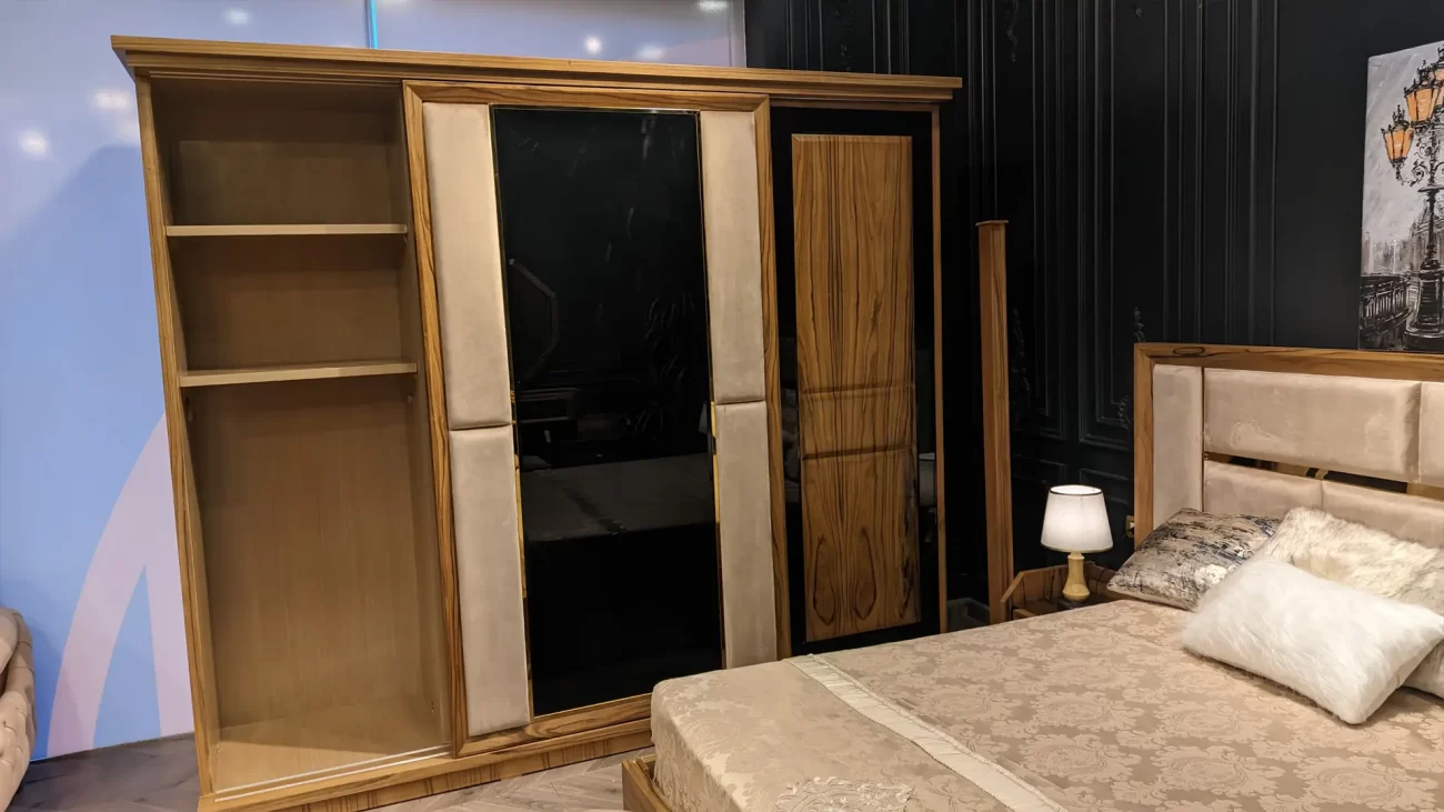 غرفه نوم مودرن 1008   المواصفات: القشرة الخشبية الطبيعية تعطي للغرفة رونق خاص وفريد، فتأخذك إلى أجواء الطبيعة الخلابة مع