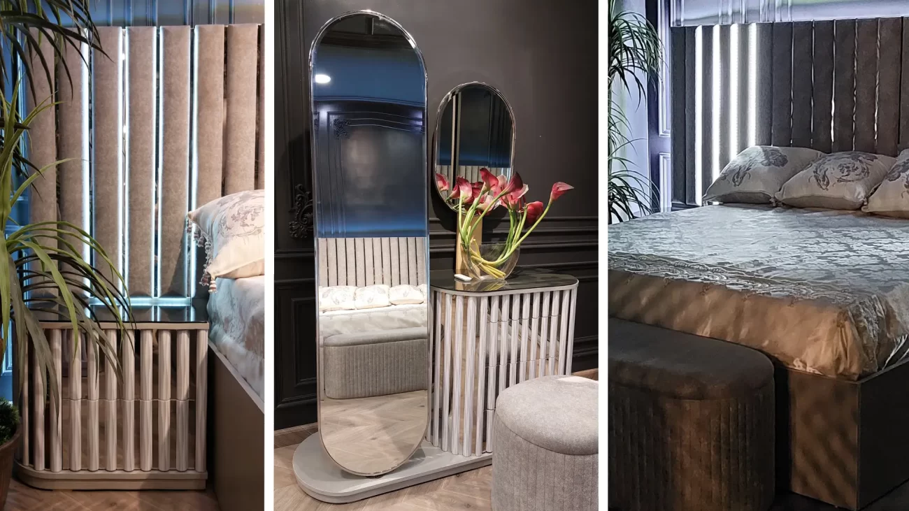 غرفه نوم مودرن 1004 المواصفات: غرفة نوم مودرن 2024 مميزة بكل تفاصيلها الجميلة والرقيقة. تتميز بظهر سرير قماشي مبطن