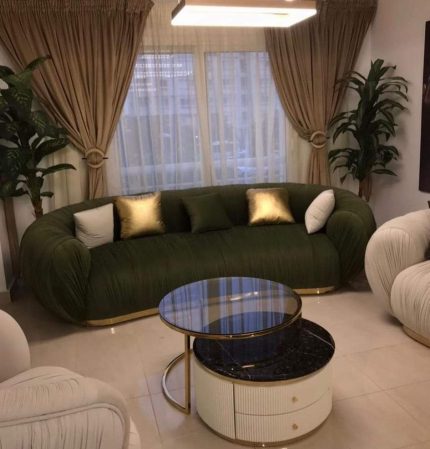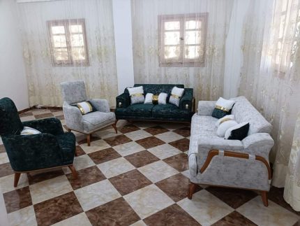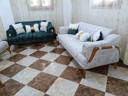 - مكون من كنبة ثلاثية وكنبة ثنائية وفوتيه.