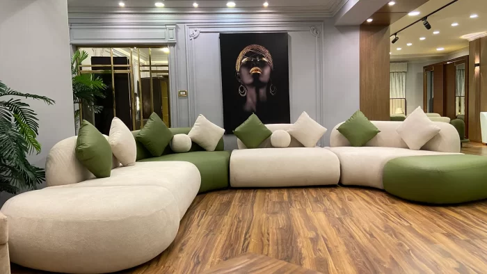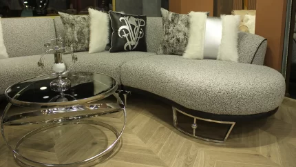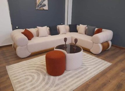 ركنه مودرن 8002 المواصفات: ركنة مودرن تعطي لمنزلك قدر عالي من الفخامة والشياكة، تتميز بإنحناء دائري غير تقليدي وأرجل معدنية
