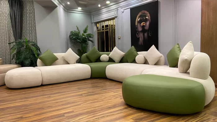 ركنه بابليز 8003 المواصفات: ركنة مودرن تعطي لمنزلك قدر عالي من الفخامة والشياكة، تتميز بإنحناء دائري غير تقليدي وأرجل معدنية