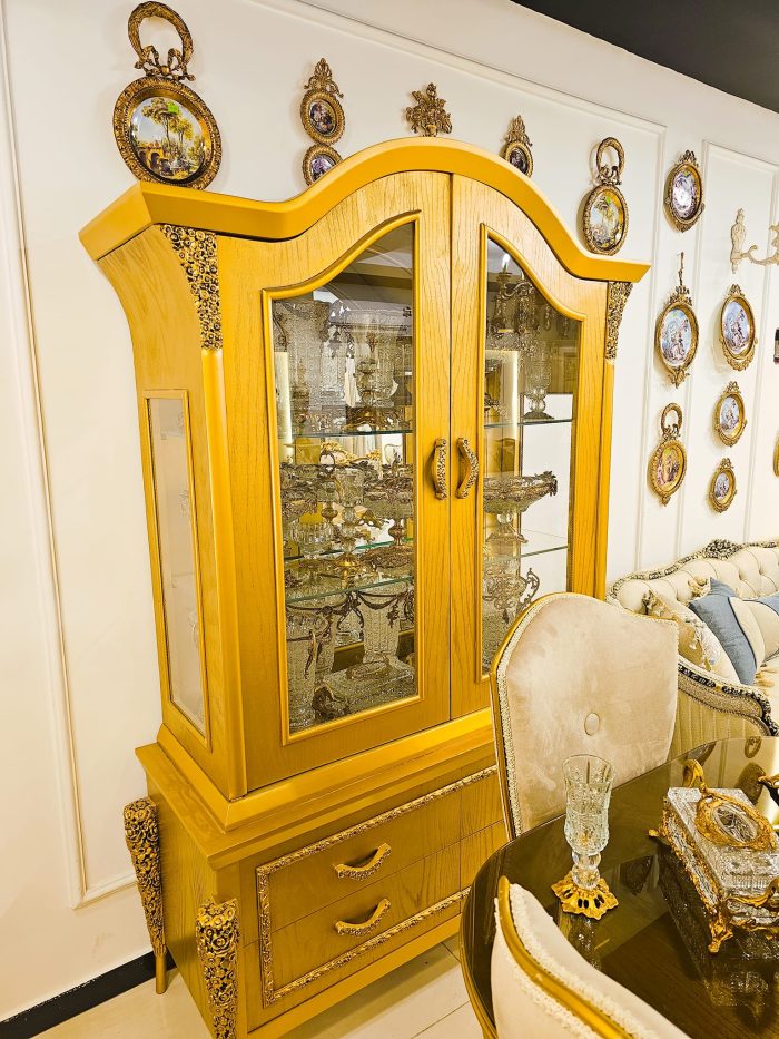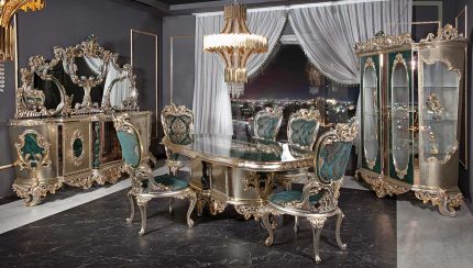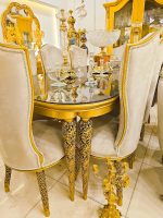 سفره كلاسيك  A017 المواصفات: اللون الذهبي يجعل للغرفة فخامة ليس لها مثيل، وخاصة مع غرف سفرة كلاسيكية بطراز عتيق. غرفة