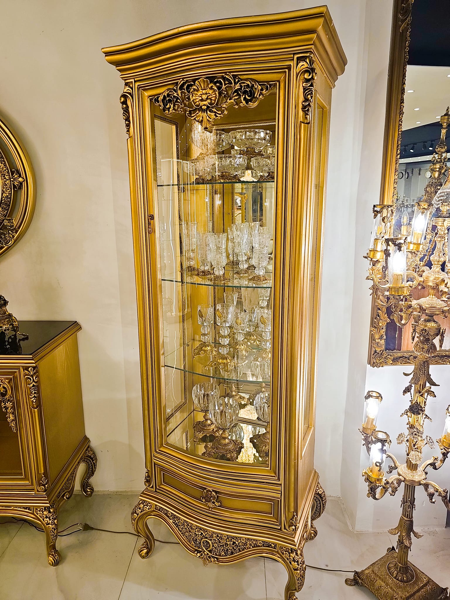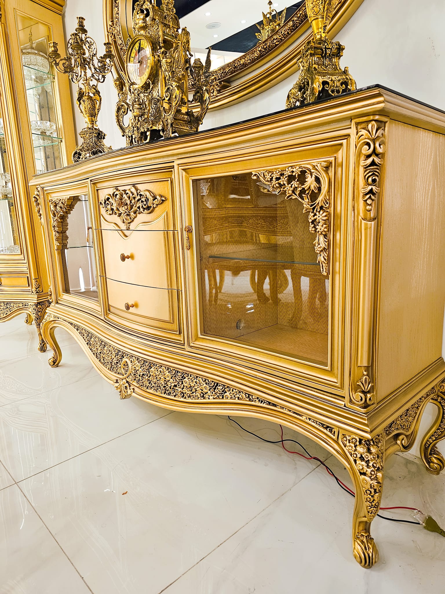 • بوفيه ببرواز كبير بانوراما، 2 نيش طولي، طاولة مع8 كراسي.