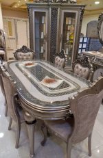 سفره كلاسيك  A015 المواصفات: اللون الأبيض يجعل للغرفة فخامة ليس لها مثيل، وخاصة مع غرف سفرة كلاسيكية بطراز عتيق. غرفة