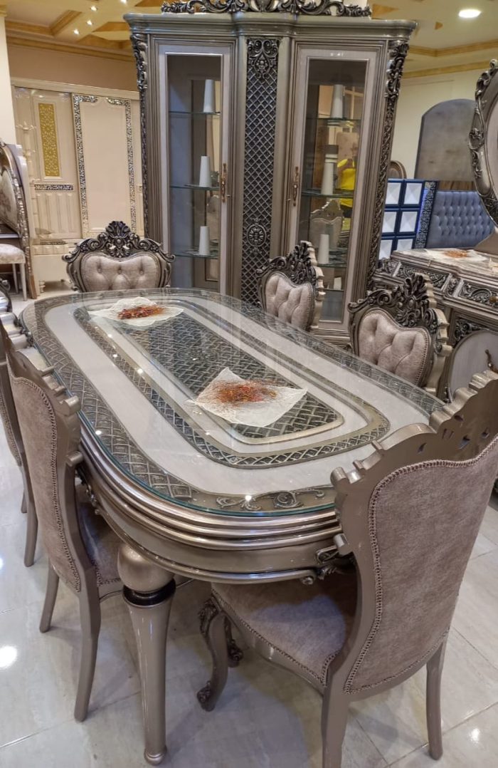 سفره كلاسيك  A018 المواصفات: اللون الزتوني يجعل للغرفة فخامة ليس لها مثيل، وخاصة مع غرف سفرة كلاسيكية بطراز عتيق. غرفة