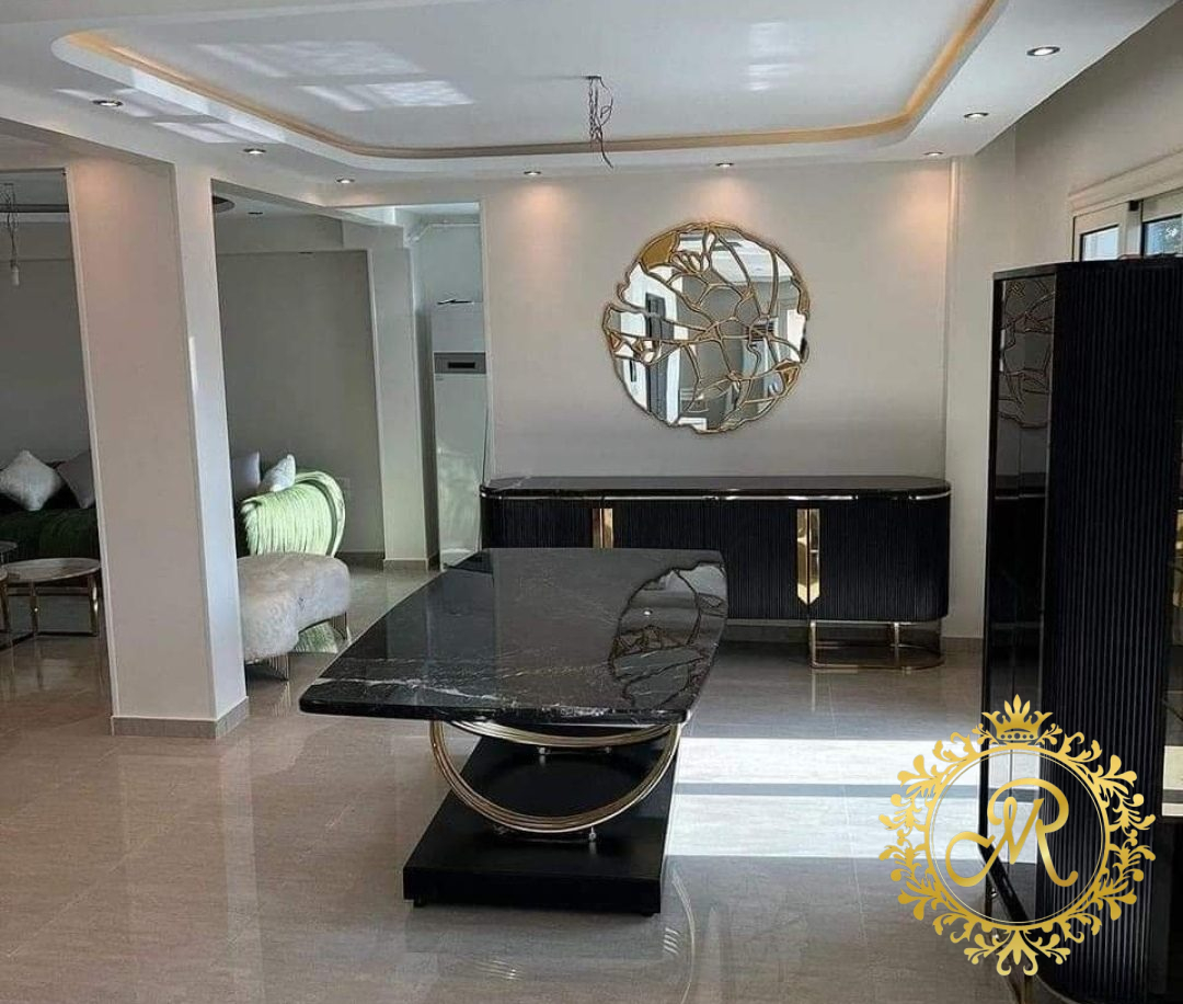 • 2 نيش صغيرطولي ، بوفية مع برواز، طاولة مع 6 كراسي.