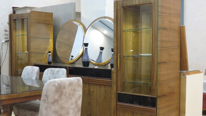 - 2 نيش صغيرطولي ، بوفية مع برواز، طاولة مع 6 كراسي.