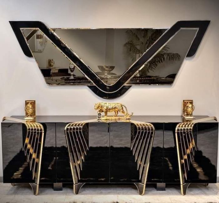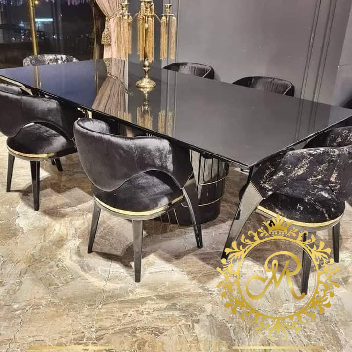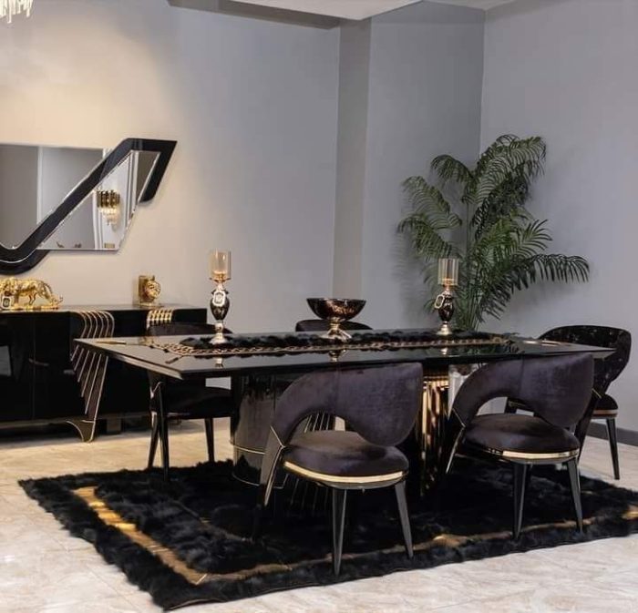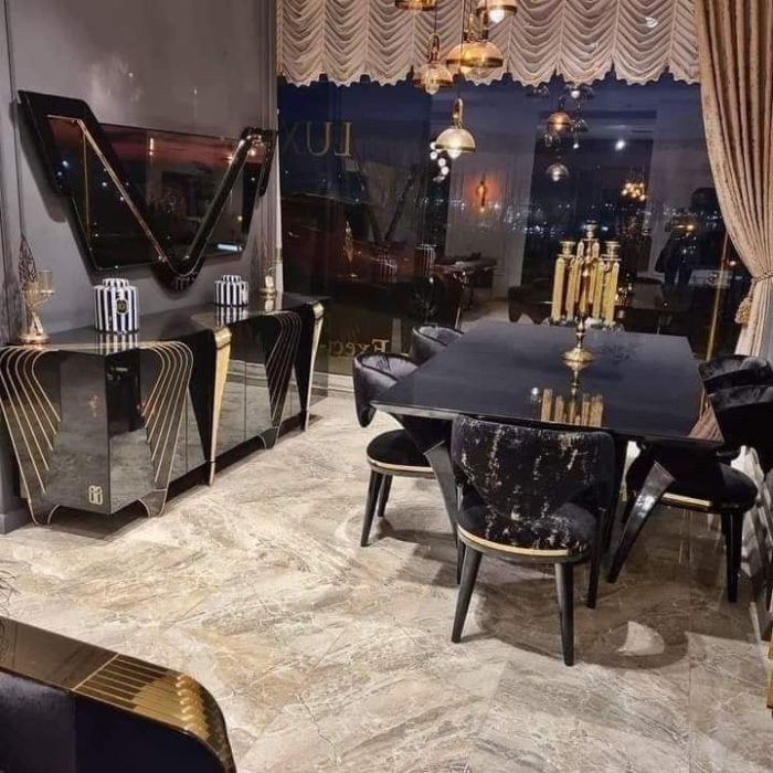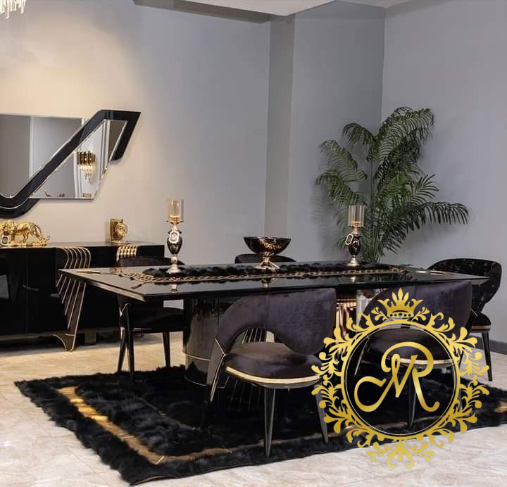 - 1 نيش مستطيل، بوفية مع برواز، طاولة مع 6 كراسي.