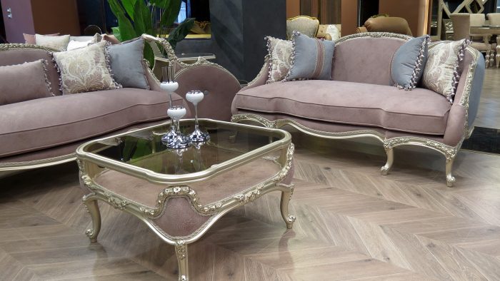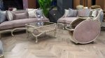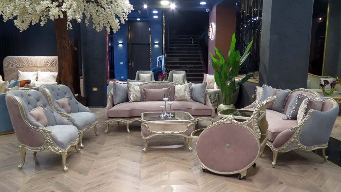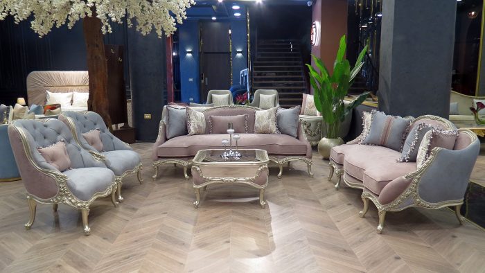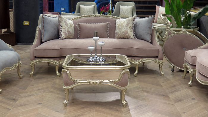 - كنبة ثلاثية، كنبة ثنائية، 2 كرسي فوتيه، ترابيزة، عربة شاي.