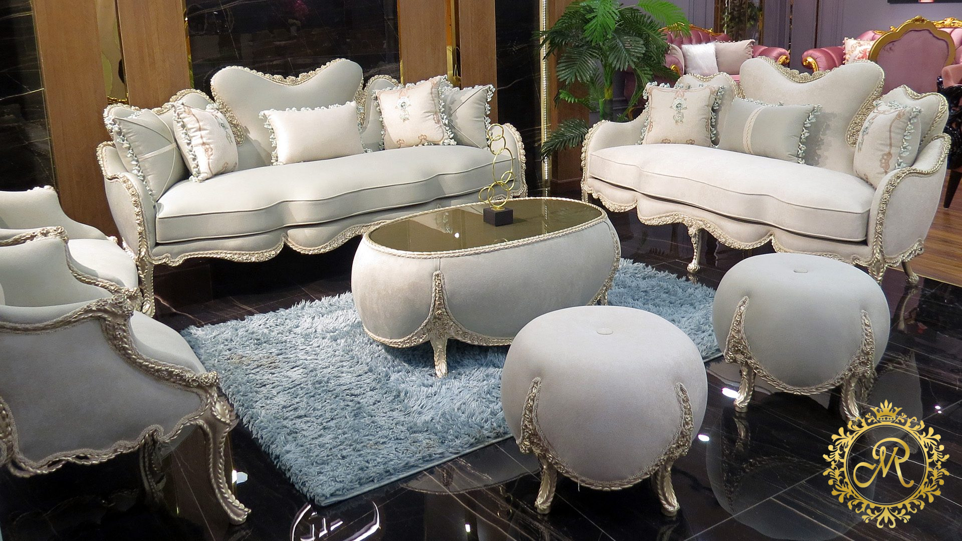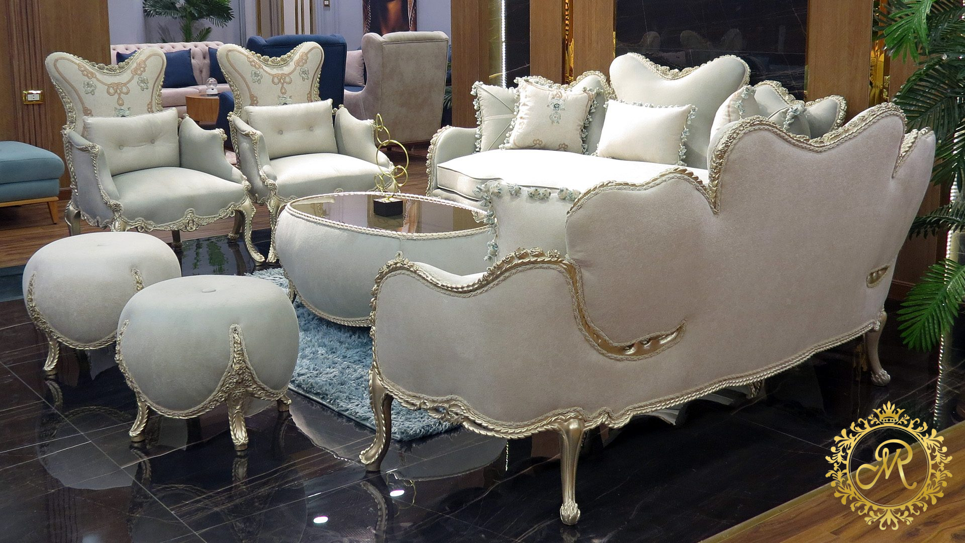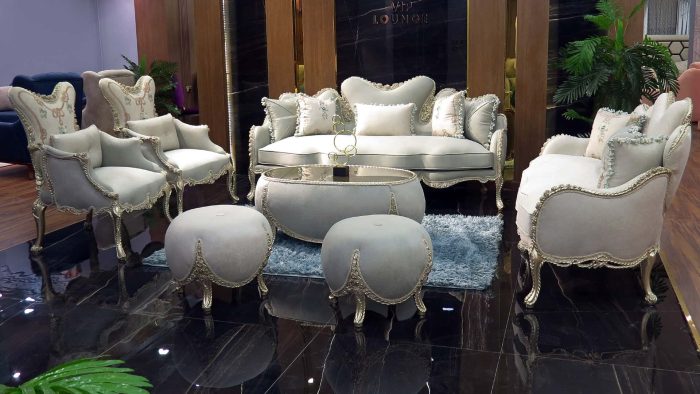 - كنبة ثلاثية، كنبة ثنائية، 2 كرسي فوتيه، 2 بف، ترابيزة.