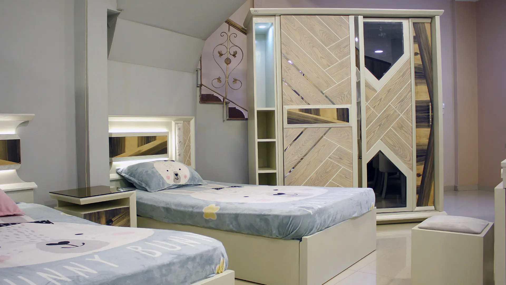 • المساحات الصغيرة تتطلب حلول تخزين ذكية، فالسريرين بهما سحارة بميكانزم قوي لكي تخزن أغراضك بسهولة.