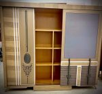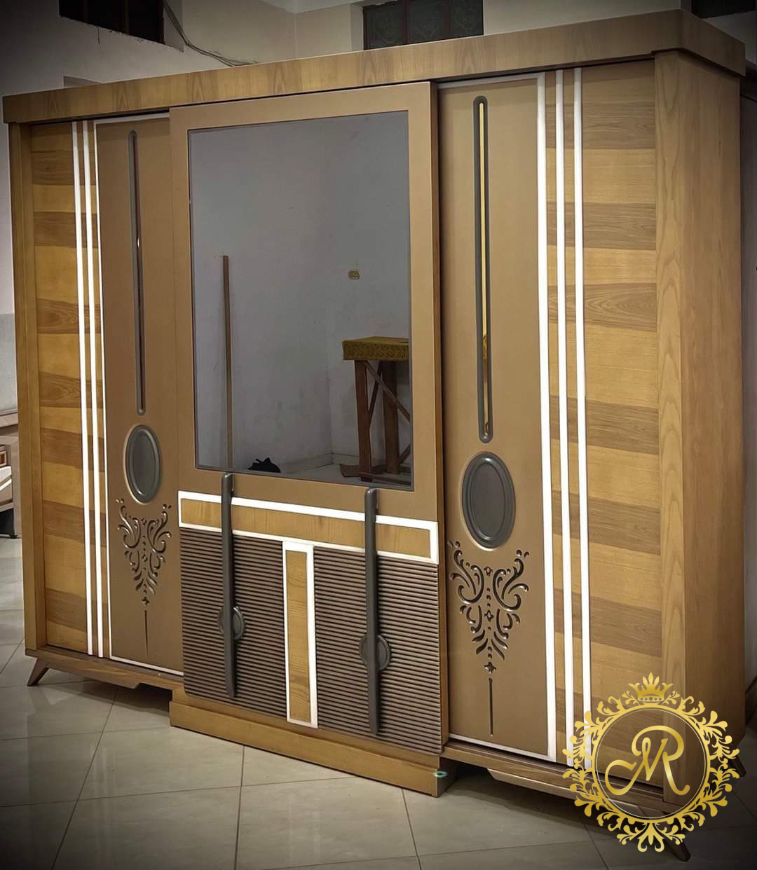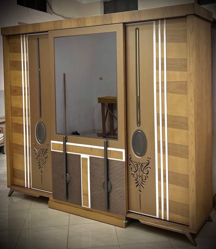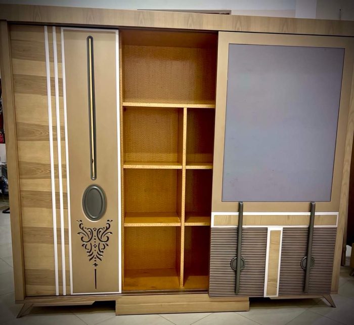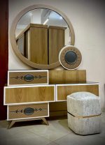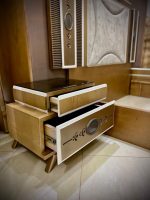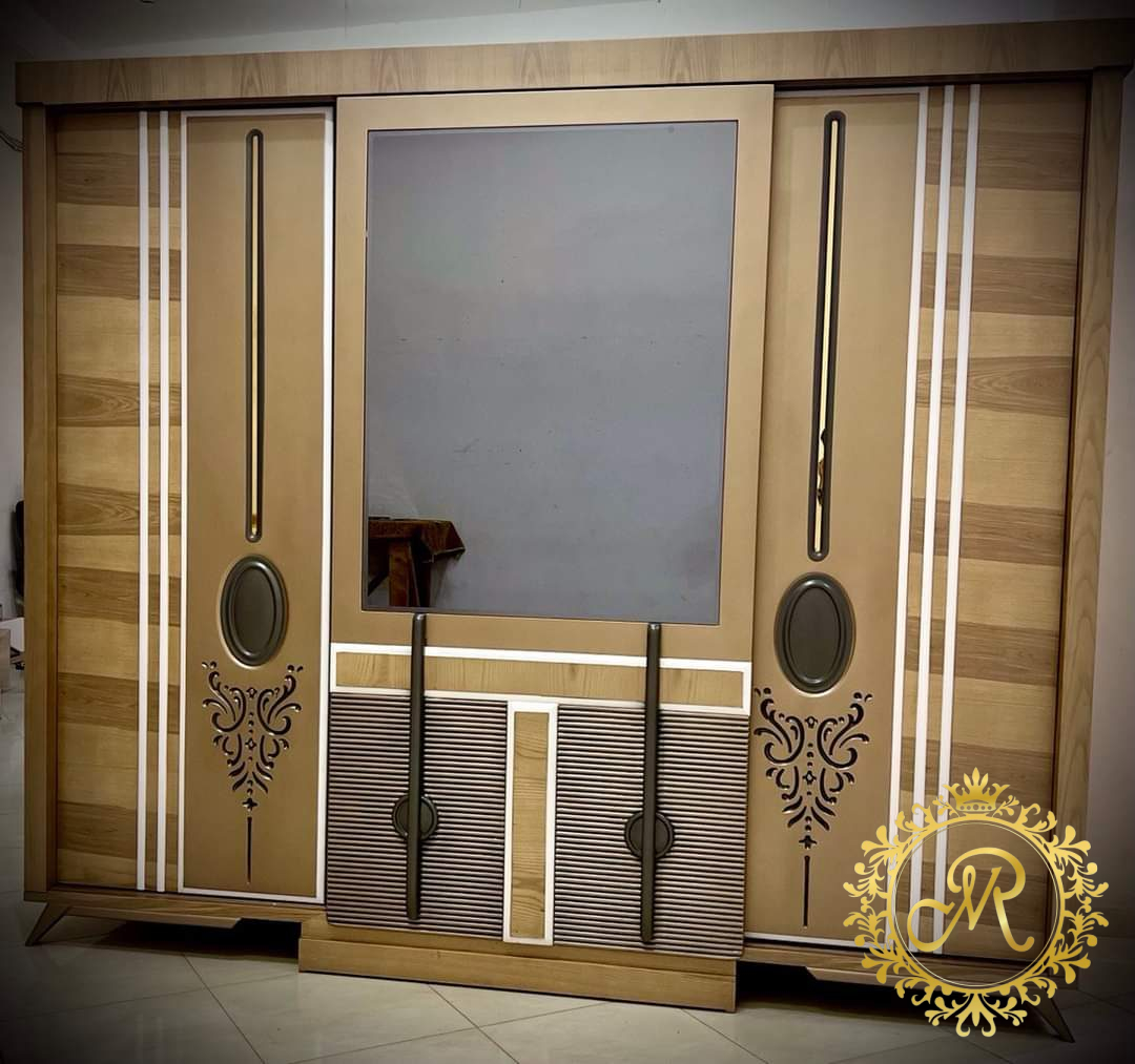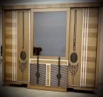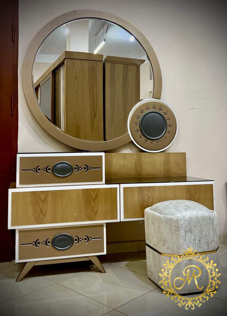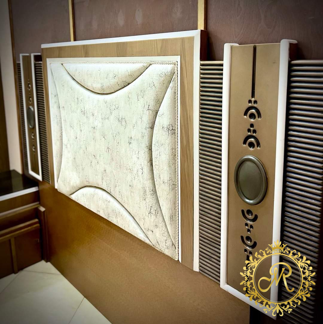 - سرير كبيرمع بانكت ، 2 كمود، تسريحة مع كرسي ، دولاب كبير.