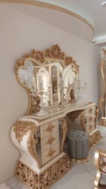 - سرير كبير، 2 كمود، تسريحة مع كرسي، دولاب كبير 6 درفة.