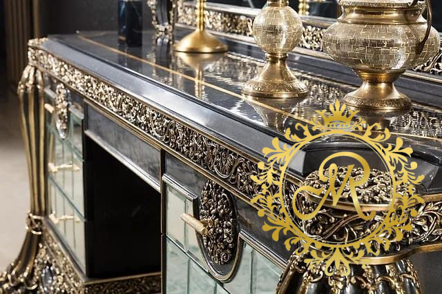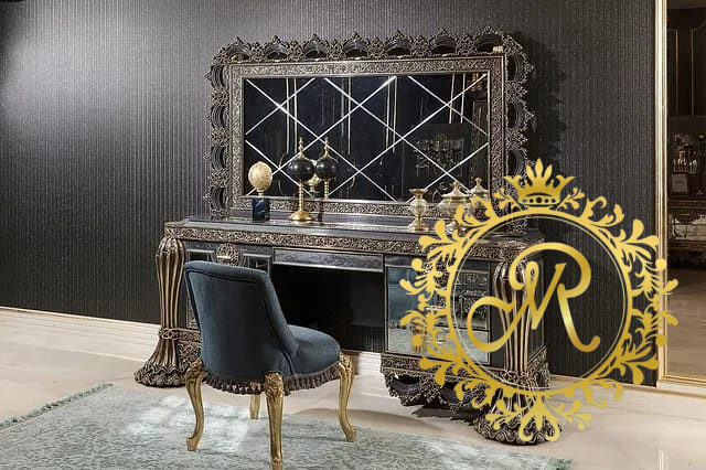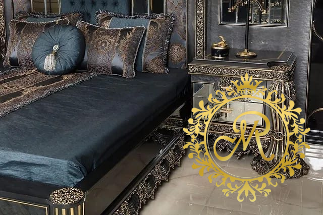 - سرير كبير، 2 كمود، تسريحة مع كرسي، دولاب كبير 6 درفة.