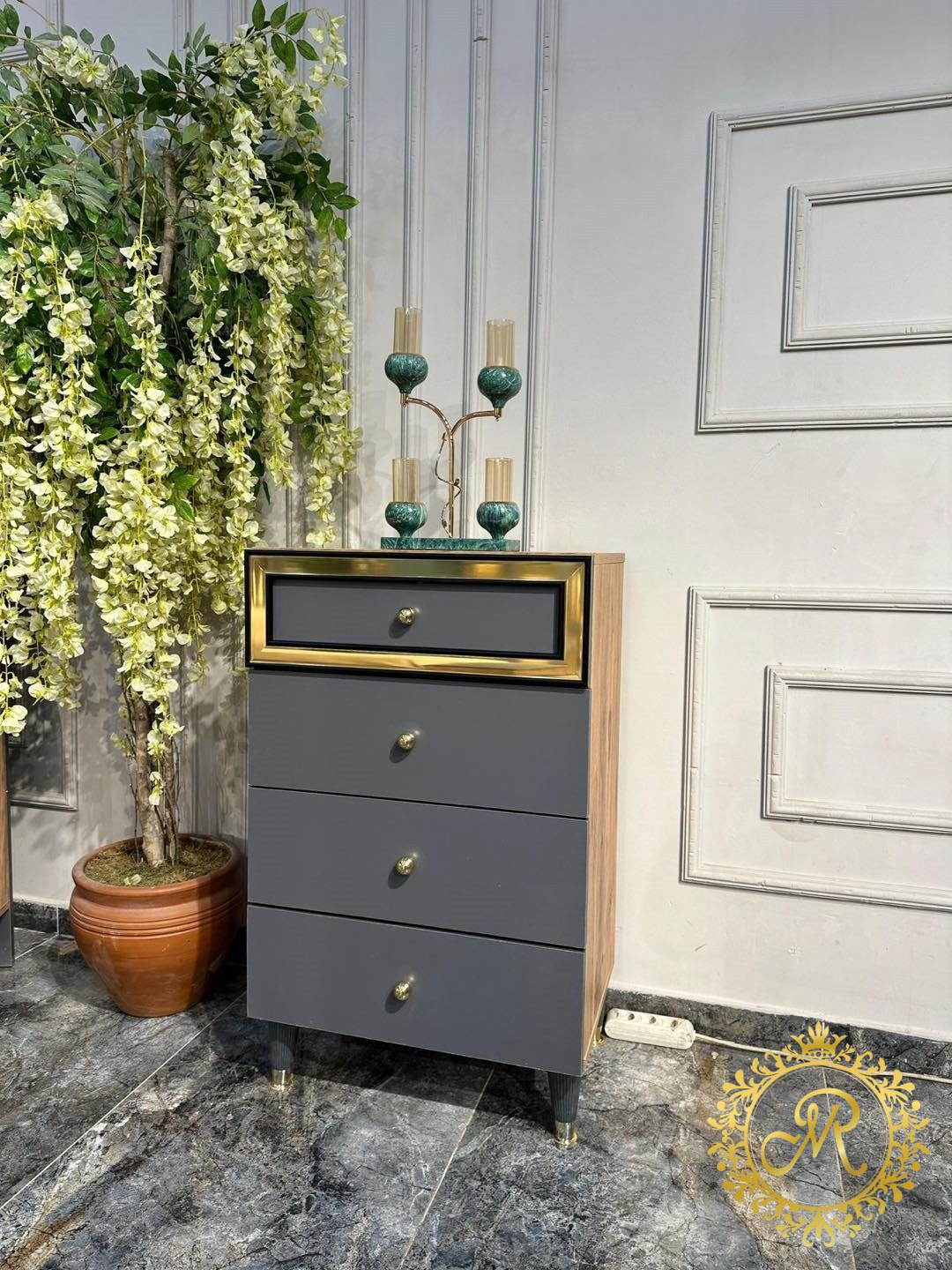 غرفه نوم مودرن 1006 المواصفات: لارين غرفة نوم مودرن لها شكل مميز وبراق، وذلك لأنها مجلدة بشرائط ستانلس في جميع