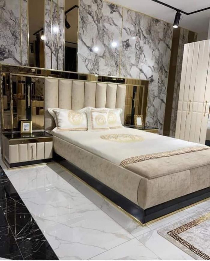 - سرير كبير ، 2 كمود، تسريحة مع بف، دولاب كبير.