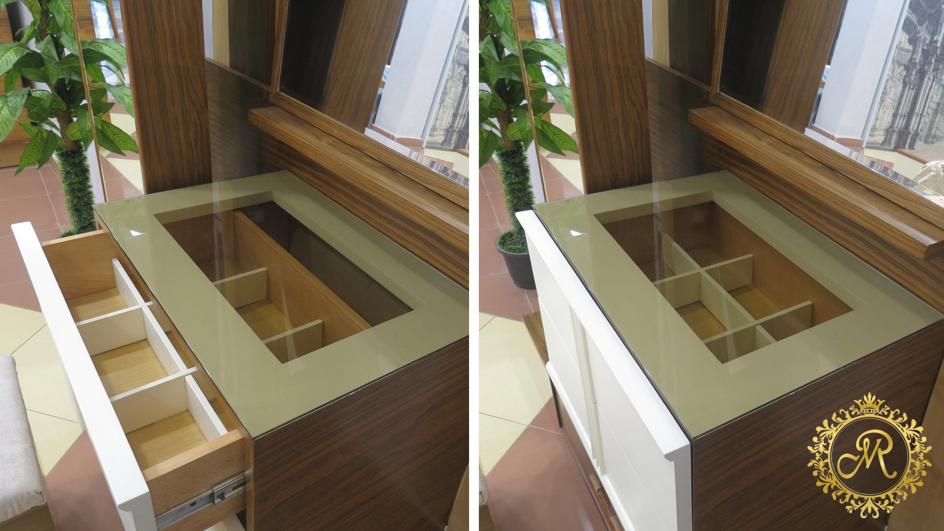 • الدولاب به مرآة سوداء مدمجة تعطي للغرفة شكلا عصريا فريدا.