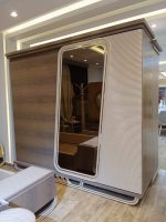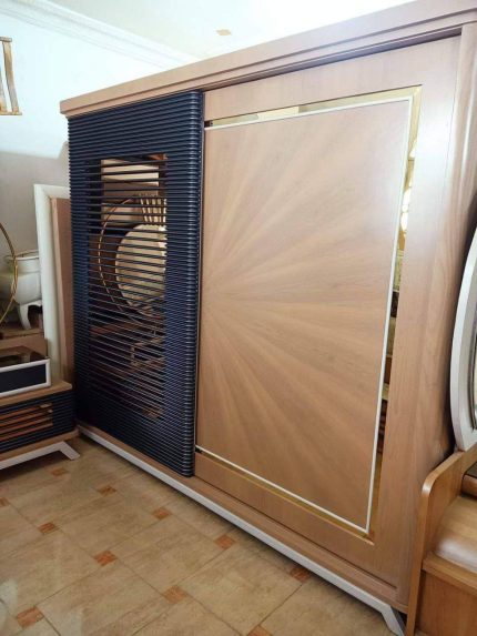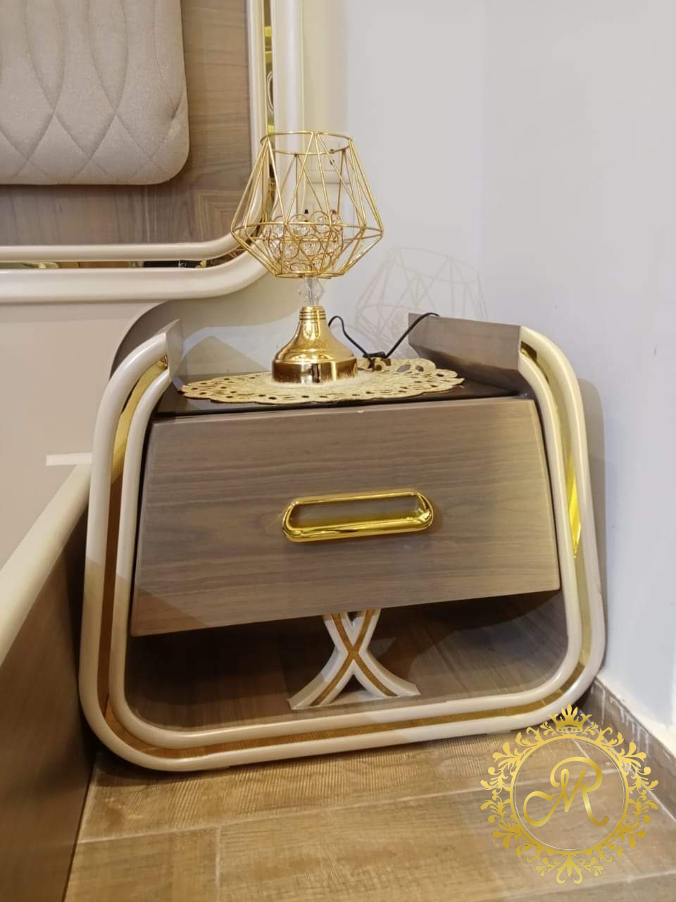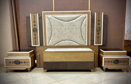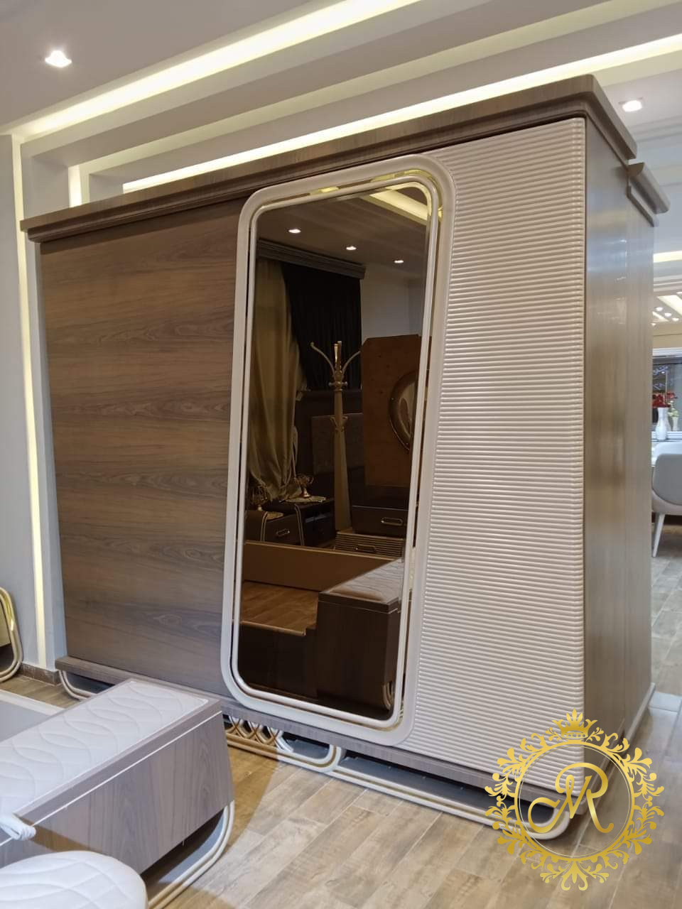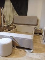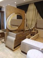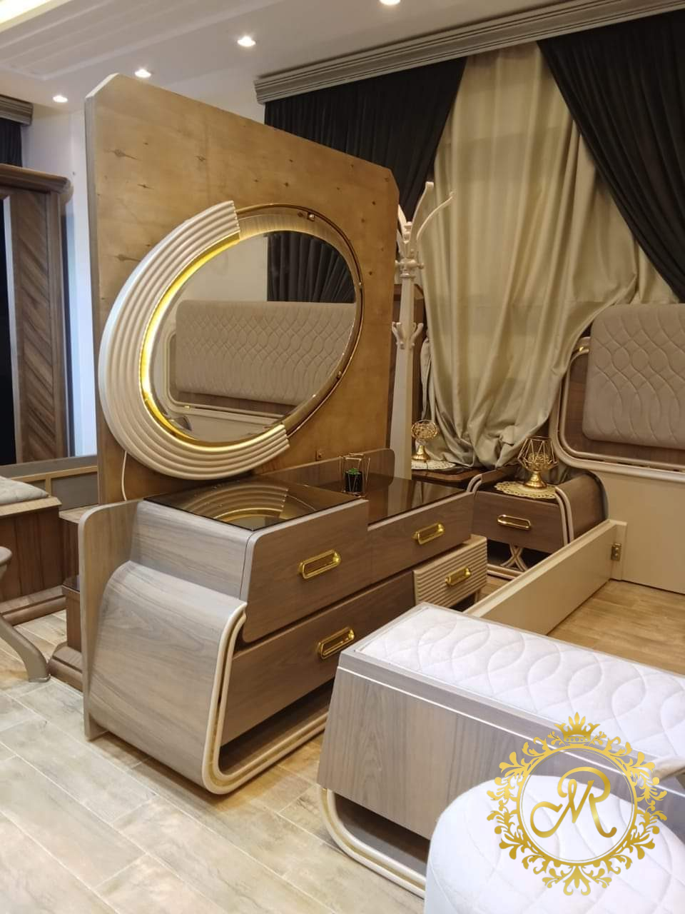 - سرير كبير ، 2 كمود، تسريحة مع كرسي استيل، دولاب كبير.