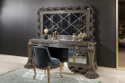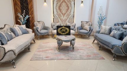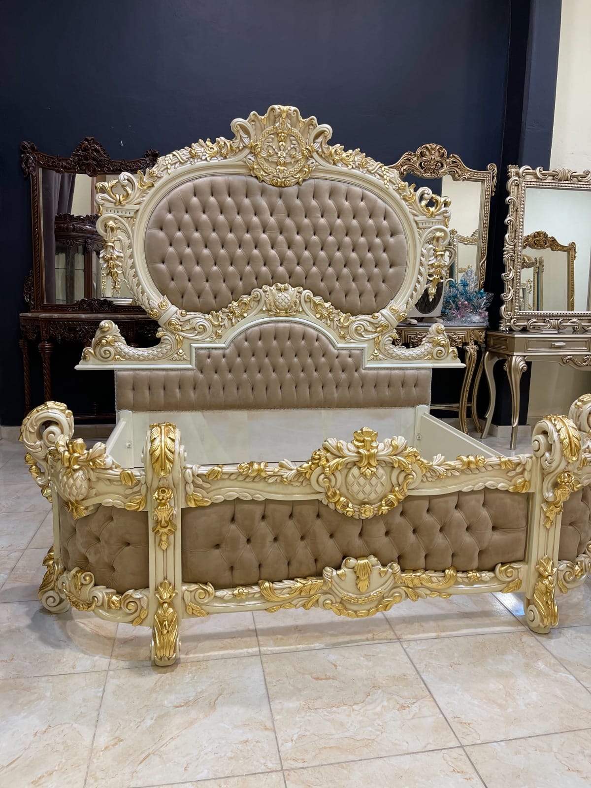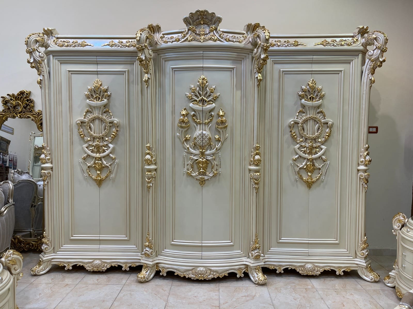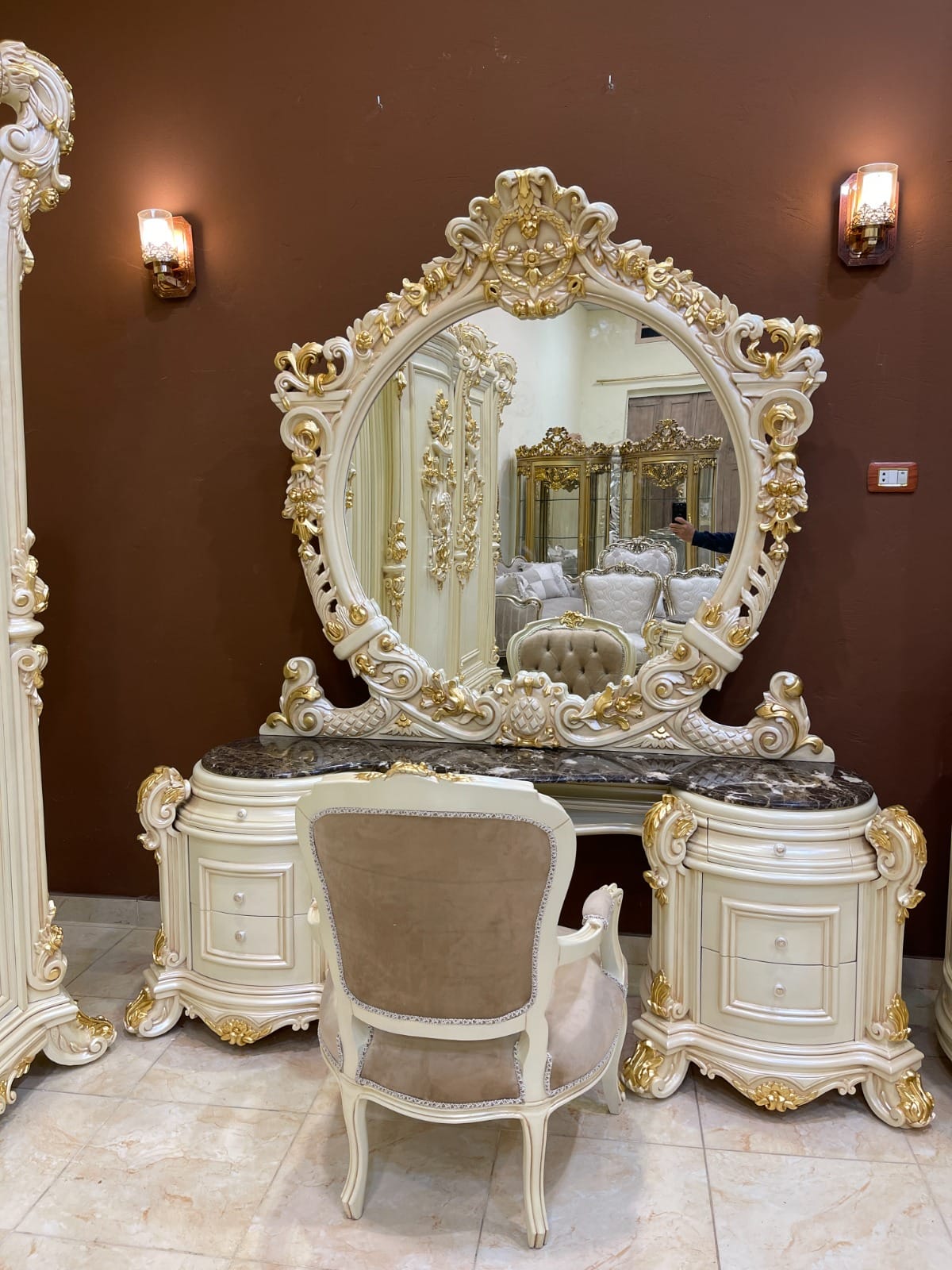 - سرير كبير، 2 كمود، تسريحة مع كرسي، دولاب كبير 6 درفة.