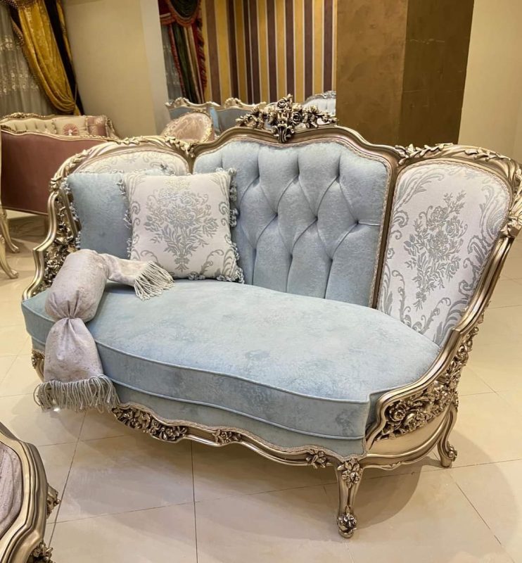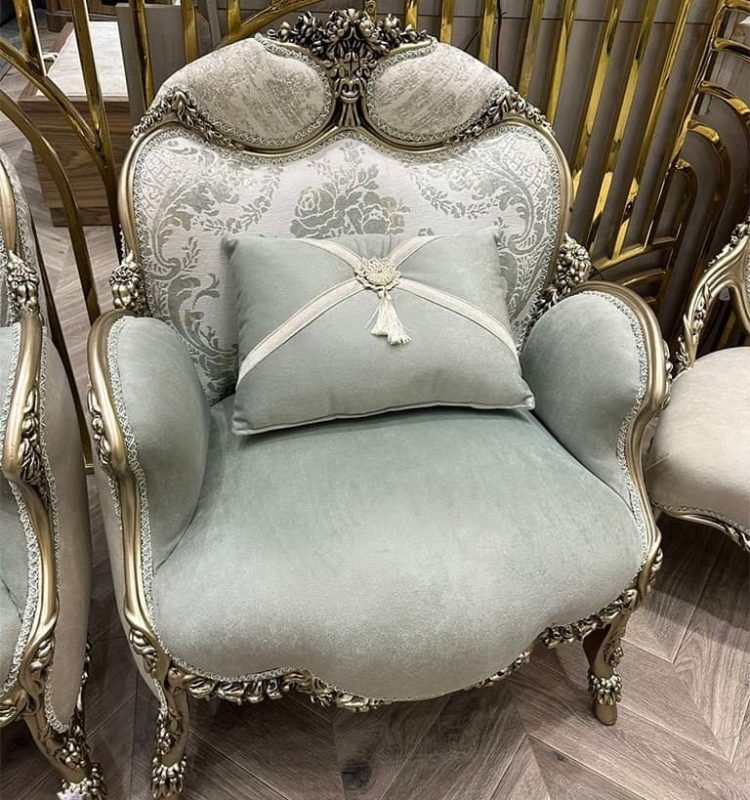 صالون كلاسيك 3011   المواصفات: يتميز الإطار الخشبي المكشوف بتشطيبات فضية أو ذهبية مذهلة بهذا التصميم المنحني كرسيان أنيقان يزينان